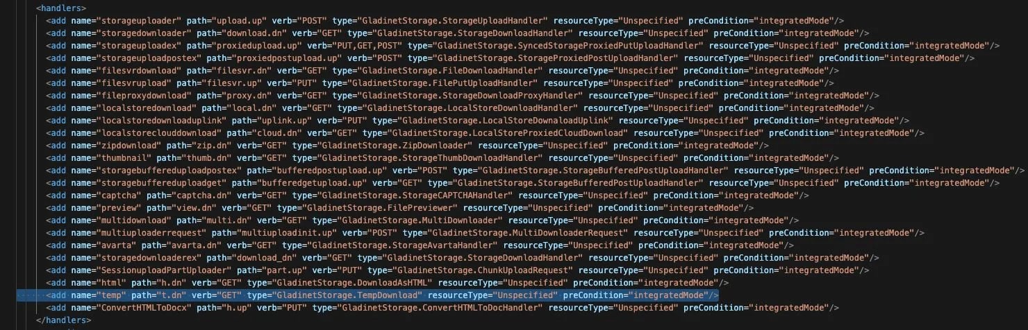 Tiltsa le az ideiglenes kezelőt (temp handler) az UploadDownloadProxy komponens Web[.]config fájljában: