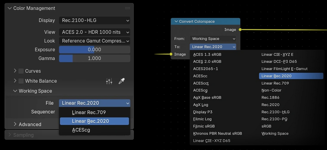 A Blender 5.0 a színkezelést minden korábbinál határozottabban tereli a HDR (High Dynamic Range) és széles színskálás (wide-gamut) munkafolyamatok felé.