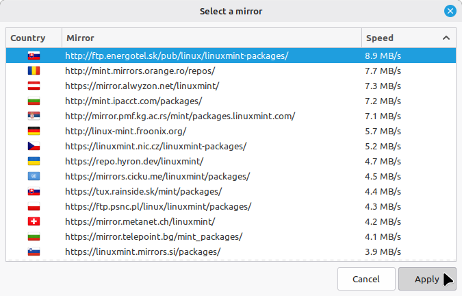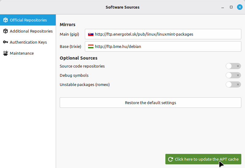 Talán vannak olyanok, akiknél ez a tükör van beállítva a Frissítéskezelő Szoftverforrások fülén. Szerintem viszonylag egyszerűen és kényelmesen elvégezhető itt grafikus felületen a csere. Csak rá kell kattintani a quantum-mirror-t tartalmazó tételre és vezet végig az automatizmus. Vársz egy kicsit, legfelül lesz a helyette jelenleg elérhető tükörszerver, azt kiválasztod és jóváhagyod a változtatást, aztán még a következő ablakban csináltatsz egy a jelenlegi állapothoz igazodó tárolófrissítést, türelemmel kivárod, míg végez, és kész is vagy.