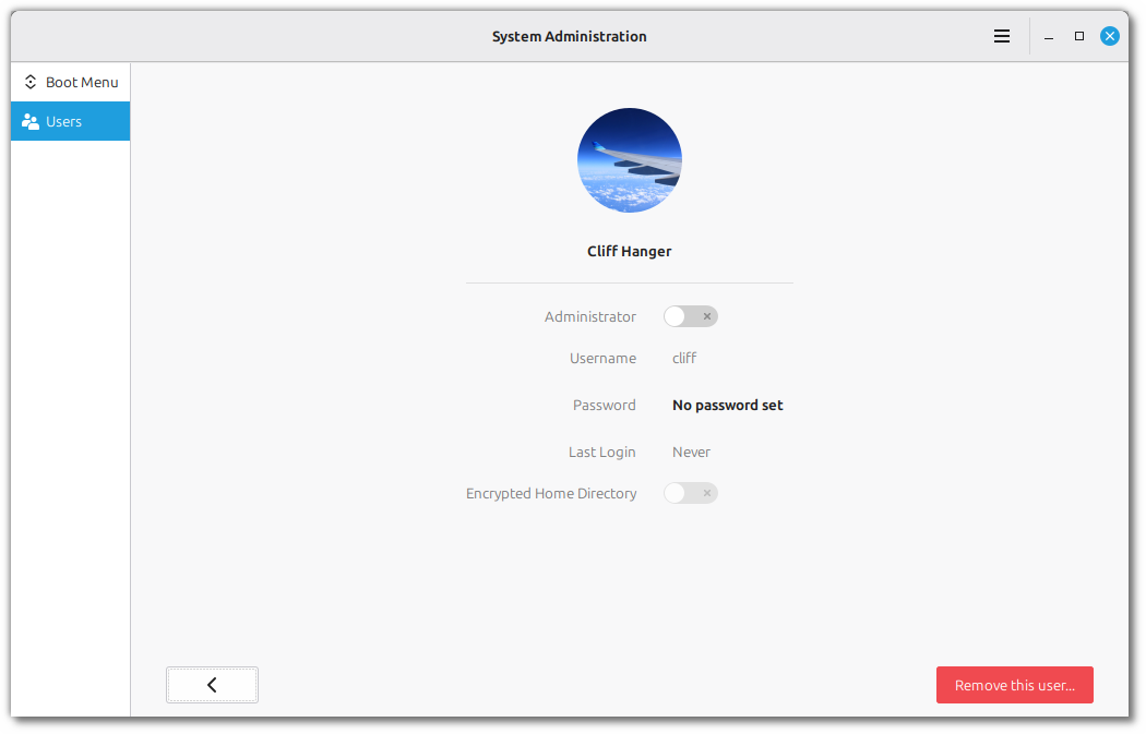 A mintsysadm felhasználókezelése a leggyakoribb feladatokra összpontosít. Miután egy felhasználó létrejött, az adott felhasználó rendszergazdai beavatkozás nélkül beállíthatja a jelszavát, és véglegesítheti a fiókját. A saját könyvtár titkosítása, amelyet eddig csak az operációs rendszer telepítésekor lehetett beállítani, mostantól teljes mértékben támogatott új felhasználói fiókok létrehozásakor is.